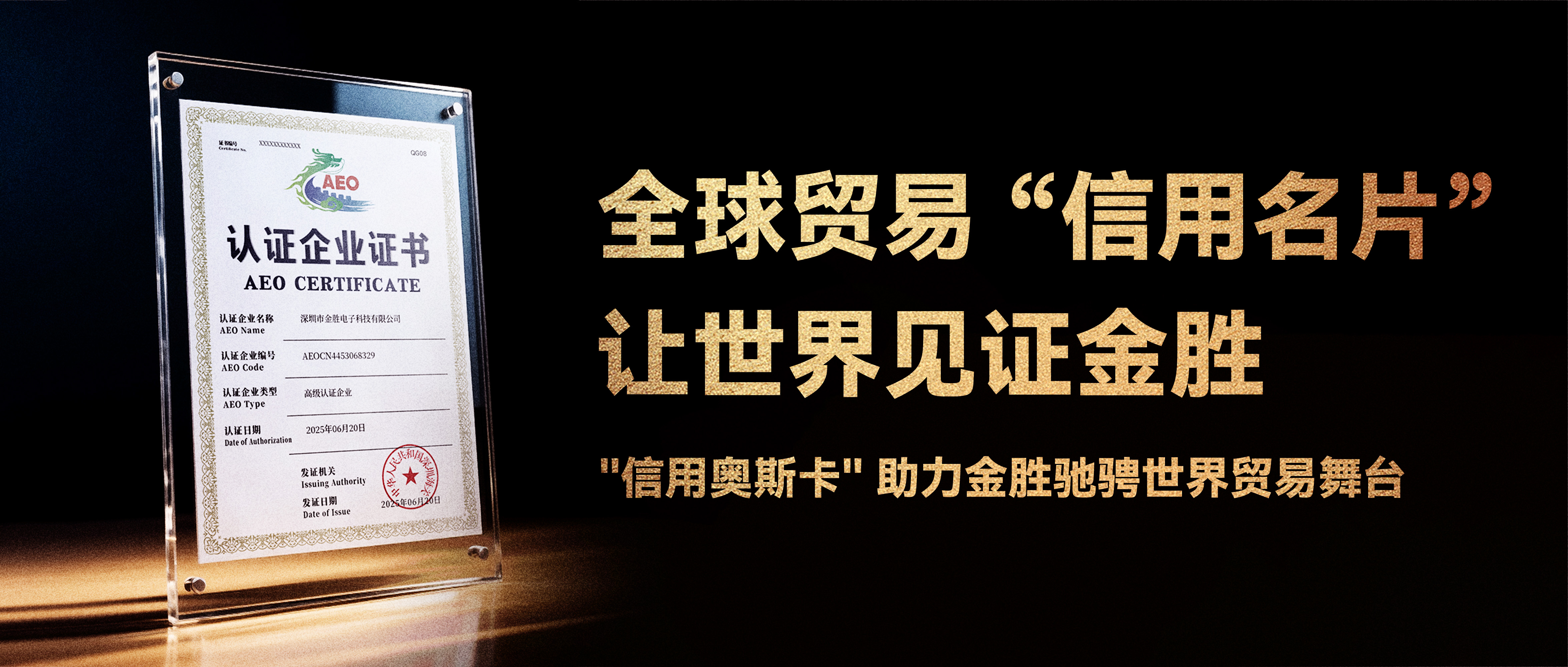 【重磅喜訊】深圳市金勝電子科技有限公司正式通過(guò)海關(guān)AEO高級(jí)認(rèn)證! 了解更多